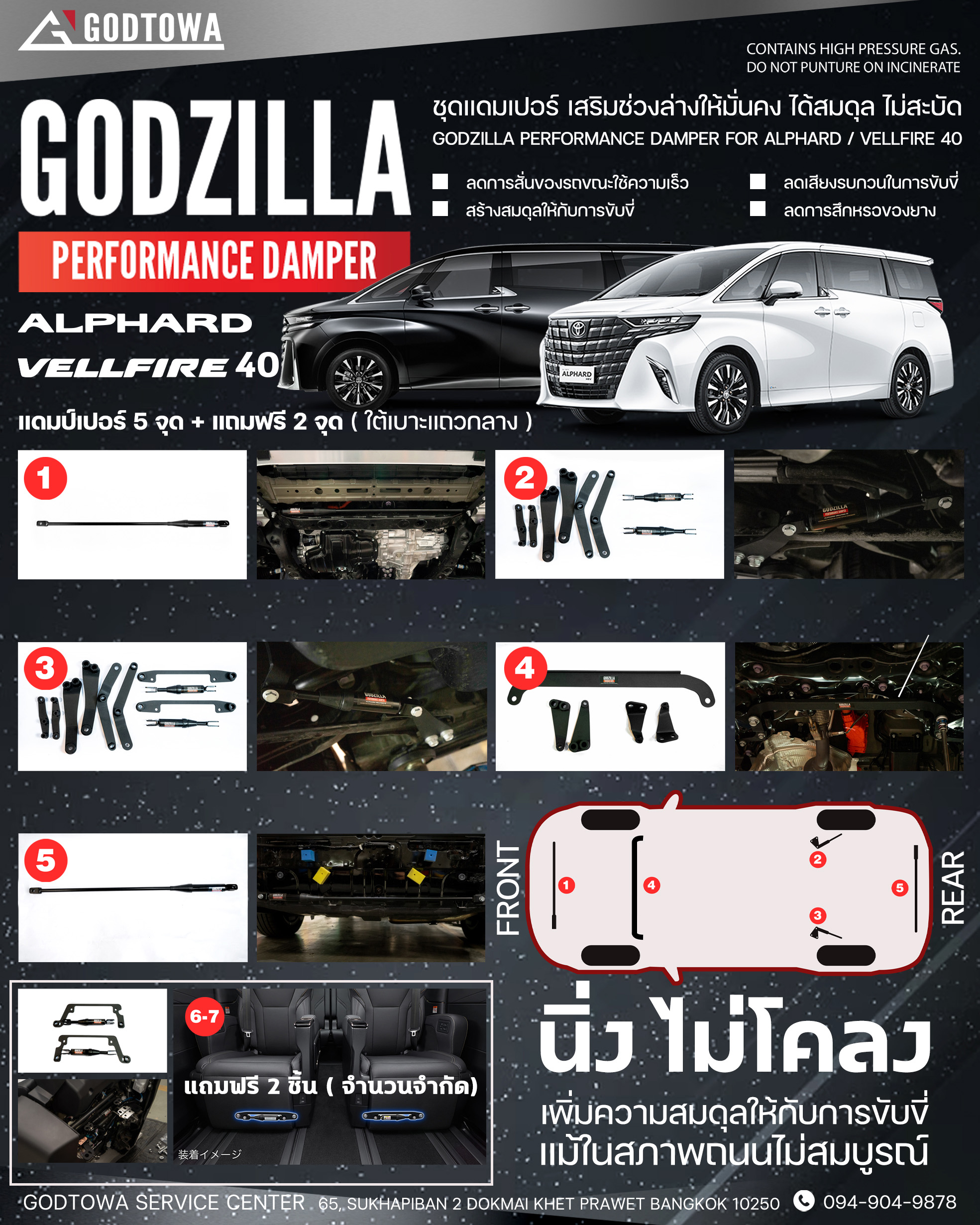 ภายในชุดประกอบด้วย แดมเปอร์ 5 จุด + แถมฟรี 2 จุด (ใต้เบาะ + แถวกลาง)
